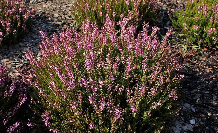 Вереск относится к семейству Вересковых и представлен в виде небольшого кустарника с четырехгранными узкими чешуйчатыми листочками. Кустарники вереска достигают до метра в высоту. Разновидностей вереска довольно много, все они имеют различную окраску листьев от всех оттенков зеленого до оранжевого, желтого и даже серебристого. Крона крупная и компактная. Цветки вереска собраны в кистевидные соцветия, бокаловидные. Цветет растение разнообразными цветами, преимущественно белого или розового цвета, но так же есть разновидности с вишневым или малиновым цветением.
